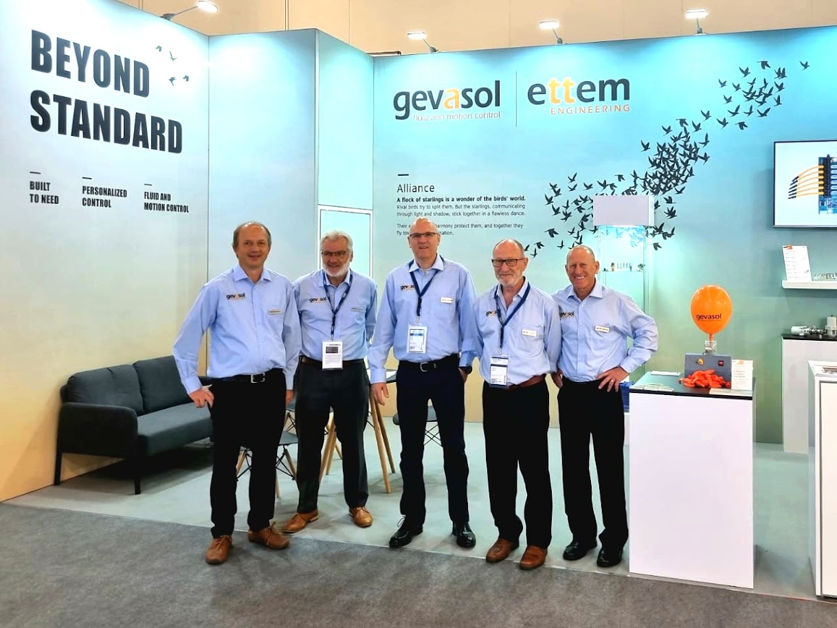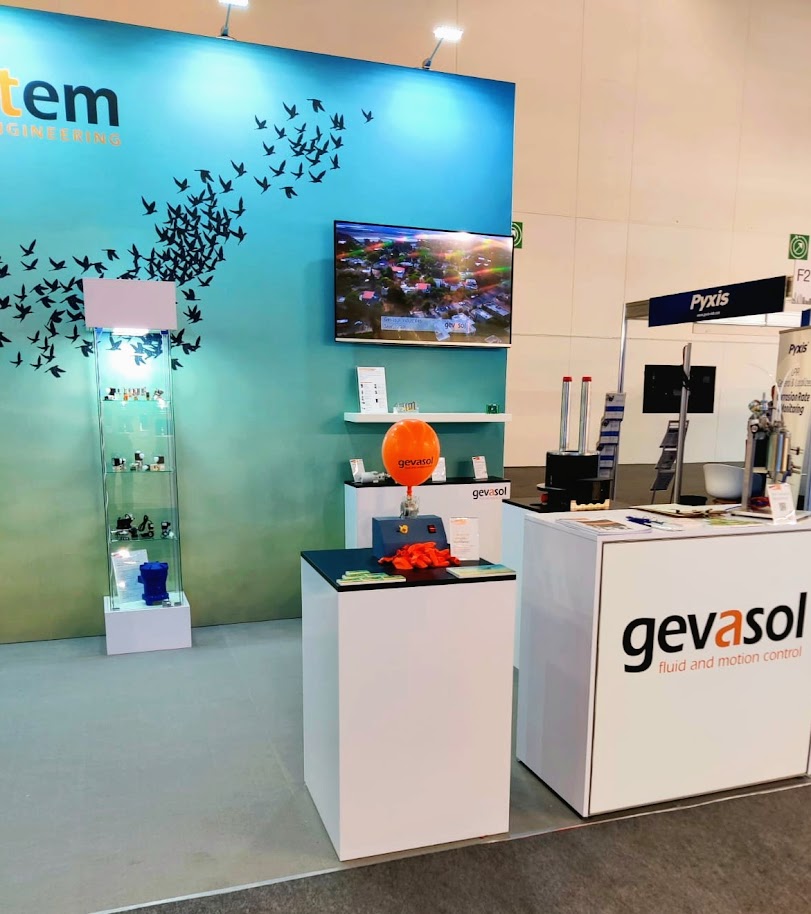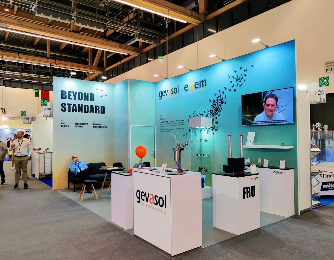 Mechanical seals, proportional valves, and instrumentation valves at ACHEMA, along with representatives from Gevasol’s Fluid Control Division and Ettem Engineering. Read about our display.